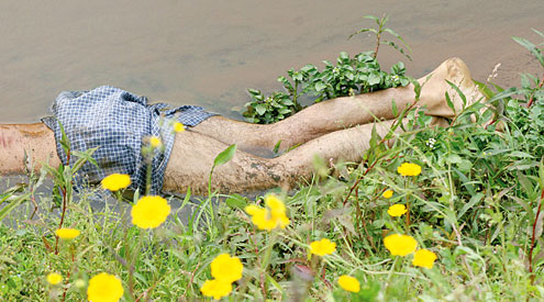 Caído num valetão, ao lado do trilho do trem, um homem aparentando 25 anos, foi encontrado morto, pouco antes das 7h de ontem, na Rua Olindo Caetani, Vila Marumbi, Uberaba. Investigadores da Delegacia de Homicídios estiveram no local e apuraram que o rapaz foi morto com tiro na cabeça.