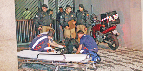 O entregador Cezar Henrique, 31 anos, foi ferido com um tiro no rosto, às 22h de domingo, depois de entregar um lanche, em um edifício da Alameda Augusto Stellfeld, centro. O atirador, que estava todo de preto, fugiu a pé, sem levar nada.