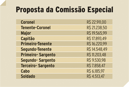 De acordo com o coronel Elizeu Furquim, presidente da Associação de Defesa dos Direitos dos Policiais Militares Ativos, Inativos e Pensionistas (Amai), o valor do salário dos soldados previsto na proposta (R$ 4.513.47) gerou reclamações por parte da tropa. “Em linhas gerais, a proposta atende as reivindicações por parte dos policias, porém, o salário do soldado ficou um pouco abaixo da expectativa. O restante da proposta está de acordo com o que queríamos. Melhor que isso só se o pagamento saísse de uma vez só e já”.