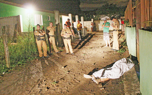 O ex-presidiário Benvindo Paulino Cardoso Filho, 31 anos, conhecido como “Ninha’, foi assassinado com vários tiros, na frente da casa de seu pai, na Rua Francisco Pereira da Cruz, no Campo Pequeno, em São José dos Pinhais, por volta das 19h40 de ontem. Ele chegava em um Gol branco, e, segundo testemunhas, foi perseguido por dois homens em outro veículo.
