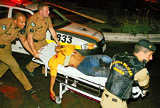 A dupla tomou um Astra em assalto, ocupado por três pessoas de uma mesma família, por volta das 8h de sábado. No início da madrugada uma viatura da Polícia Militar, que estava em patrulhamento pela região, cruzou com o carro ocupado por cinco pessoas. Ao ver a viatura, os marginais tentaram escapar e foram perseguidos. Segundo reportagem da Rádio Banda B, na fuga os seqüestradores bateram o carro em um canteiro.