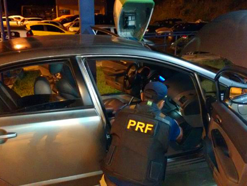 Policiais rodoviários federais prenderam na noite de sábado (04) dois homens com um equipamento utilizado em golpes contra clientes de bancos. A dupla estava em um Honda Civic, que foi abordado em frente ao Posto Taquari, no quilômetro 56 da BR-116, em Campina Grande do Sul.