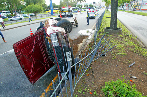 No Santana, policiais do Batalhão de Trânsito não encontraram documentos que identificassem o motorista. Dentr,o havia cheiro de bebida alcóolica e latas de cerveja, uma aberta e outra fechada. O carro foi recolhido ao pátio do Detran.
