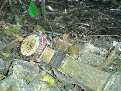 Perto das 10h, próximo ao quilômetro 32, da BR-509, o grupo se deparou com uma blusa azul, uma touca azul, um relógio, uma arcada dentária, um crânio e outros ossos. Outro tênis Nike, preto, foi achado. “Tem tudo para ser o dono da perna, em função do tênis ser par do outro e pelo estado de decomposição”, afirmou o delegado Hertel Rehbein.