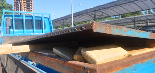 Os policiais federais foram acionados e, em uma averiguação minuciosa no caminhão, encontraram um fundo falso, onde estava estocada grande quantidade de tabletes com maconha. Estima-se que o peso da droga apreendida passe dos 300 quilos.