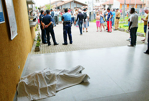 O guarda municipal Leocádio Swami de Mello e Silva, 59 anos, foi assassinado, na tarde de ontem, quando trabalhava na Escola Municipal Senador Eneas Faria, na Travessa A, Vila Autódromo, Cajuru. Segundo testemunhas, por volta de 16h, um rapaz aproveitou que a escola estava aberta por causa das atividades do Comunidade Escola e entrou para roubar a arma do guarda. O assassino acertou três tiros na vítima e fugiu tomando o rumo do Jardim Acrópole. Cerca de 50 pessoas, entre crianças, adolescentes e adultos, estavam no local no momento do crime.