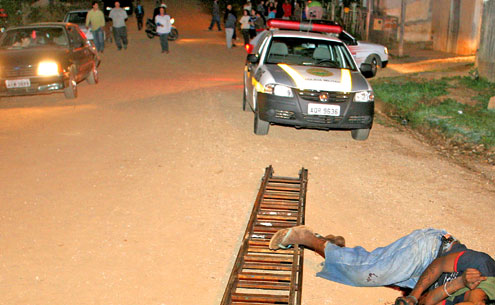 Ninguém sabe o que Elcio Lima Santos, 35 anos, fazia com uma grande e pesada escada retrátil, que ele carregava pela rua. O fato é que o homem, usuário de drogas, foi assassinado a tiros na Rua Leonardo Muraski, Jardim Paraíso, em Almirante Tamandaré, na noite de sexta-feira. Ele tombou morto na rua ao lado da escada.
