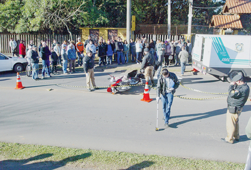 A aposentada Erminda Kaiser Netz, 92 anos, se apressou para não perder o ônibus e morreu atropelada por uma moto, às 14h20 de ontem. O acidente foi na Rua João Dembinski, na Cidade Industrial, bem em frente ao Lar de Idosos Ebenezer, onde ela morava.