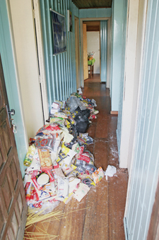 A Vigilância Sanitária inutilizou 100 quilos de alimentos em estado impróprio para consumo. No momento da autuação, havia dez moradores, que terão de ser realocados.