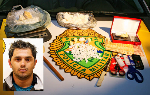 Alex disse que em sua casa havia mais droga dentro de uma caixa de ferramentas. Na residência, na Rua Professor José Maurício Higgins, no mesmo bairro, os policiais recolheram 813 gramas de cocaína, além de oito buchas grandes e outras 95 menores da droga. Na caixa também havia 382 gramas de crack, R$ 240,00 em dinheiro, duas balanças de precisão.