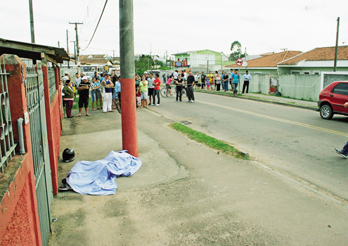 Um misterioso atirador matou um assaltante que havia acabado de roubar uma loja de presentes, na Rua Valdemiro Valaski, bairro Rio Pequeno, em São José dos Pinhais, na tarde de ontem. O bandido jogou o revólver no chão, correu 100 metros e foi baleado. O assassino fugiu num carro vermelho não identificado. O ladrão morto foi deixado para trás pelo comparsa.