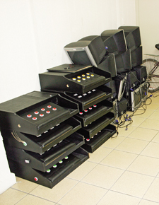 Quatorze máquinas caça-níqueis foram apreendidas ontem ao meio-dia, em um apartamento na Rua Monsenhor Celso, no Centro, entre as ruas Marechal Deodoro e José Loureiro. A equipe do 1.º Distrito Policial encontrou apenas a gerente da casa e a levou à delegacia para depor, mas a mulher não disse quem é o proprietário da jogatina.