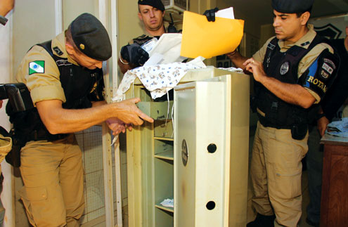 Lá, dois homens foram detidos e a polícia apreendeu dois cofres, nos quais encontrou R$ 16 mil em dinheiro e cheques, munição e certificados de garantias de joias. Na casa também foram recolhidas drogas, balanças de precisão, carros e celulares.