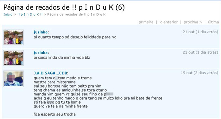 Outros, não se importaram com a seqüência de reportagens apresentadas pelo Paraná-Online e continuam trocando ameaças. Um rapaz, integrante da CDE, ameaça outro da Barroka. “É CDE Mané, Comando do Extermínio vai a tua caça.”