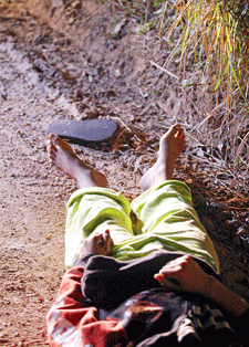Segundo os soldados Marcelino e Roberto, do 17.º Batalhão da Polícia Militar, uma ligação anônima informou que no local havia uma criança caída. “Quando chegamos o garoto já estava morto. O que chamou a atenção é que ele tem um ferimento em cada mão. Ou tentou se defender ou foi torturado antes de ser morto”, explicou Marcelino.