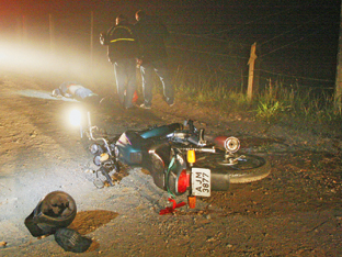 Um homem foi encontrado morto ao lado da motocicleta em Araucária, na noite de sábado. Dois capacetes estavam no chão, o que indica, de acordo com a polícia, que alguém estava na garupa.