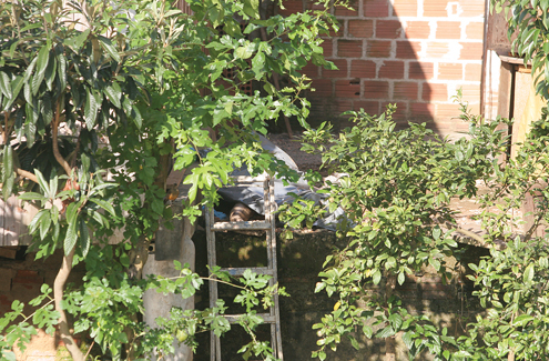 Para chegar até o cadáver, equipes da PM e da Delegacia de Homicídios (DH) passaram por uma residência que fica na Travessa 33, próximo à esquina com a rua Reinaldo Pazello.