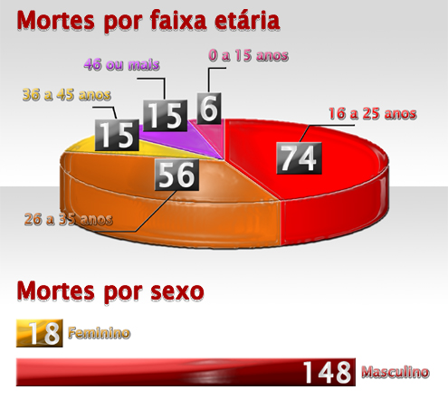 Das 166 pessoas assassinadas em setembro, 148 eram homens – 89% do total. A maioria das vítimas tinha entre 16 e 25 anos, assim como aconteceu no mês de agosto. Porém, com relação ao mês anterior, houve acréscimo no número de vítimas entre 26 e 35 anos, de 41 para 56 casos.