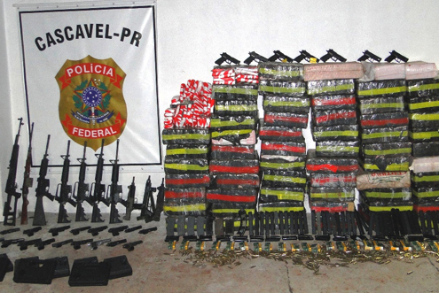 Policiais Federais da Delegacia de Cascavel apreenderam entre a noite de ontem e a madrugada desta quarta-feira uma grande quantidade de armas, carregadores, munições, maconha e haxixe.