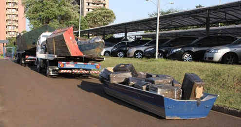 Na madrugada desta sexta-feira (21), a Polícia Federal por meio da sua especializada DEPOM, em operação embarcada, apreendeu aproximadamente U$$ 150 mil entre embarcações e mercadorias contrabandeadas do Paraguai.