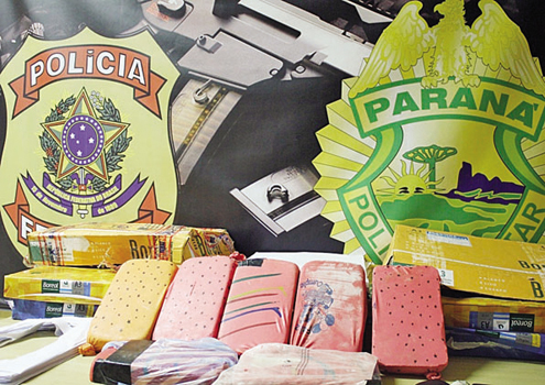 Sete quilos de crack foram apreendidos na área da Unidade Paraná Seguro (UPS) do Parolin pelas polícias Militar e Federal. Quatro pessoas, entre elas uma mulher paraguaia, foram presas em flagrante, pela manhã, quando retiravam a droga, escondida em pacotes de papel, de uma empresa de ônibus que transporta encomendas. A PF informou que não há indícios de envolvimento da transportadora no esquema.
