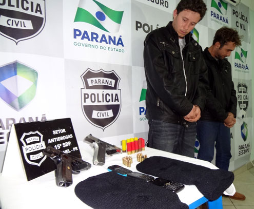 Uma denúncia anônima, recebida por meio do fone 197 da Polícia Civil, resultou na prisão em flagrante de dois rapazes armados com pistolas 9 milímetros, em Cascavel, durante o fim de semana. A ação envolveu investigadores do GDE (Grupo de Diligências Especiais) e do Setor Antidrogas.