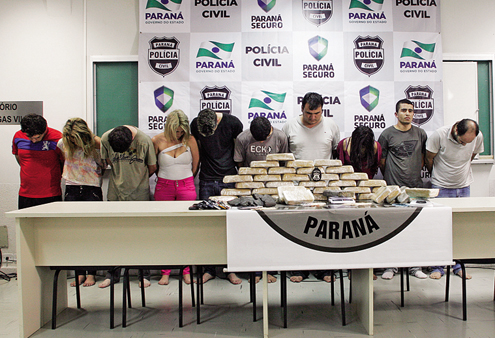 “Iniciamos o monitoramento e recebemos a informação de que o casal Felipe Estevão Gonçalves, 22 e Valdirene Rodrigues Padilha, 24, eram responsáveis pela negociação de drogas em Foz do Iguaçu. Também soubemos que grande quantidade de entorpecente seria trazida para Curitiba pelo paraguaio Richard de Jesus Agüero Ortigoza, 29”, explicou a delegada.