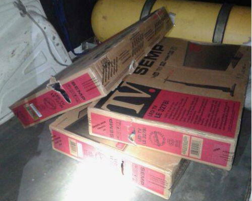 O homem, de 49 anos de idade, dirigia uma Fiat Fiorino. Dentro do veículo, abordado pelos policiais rodoviários federais na altura do quilômetro 485 da BR 116, havia três aparelhos de TV LED de 32 polegadas, da marca Semp Toshiba. Ele admitiu ter participado do saque.