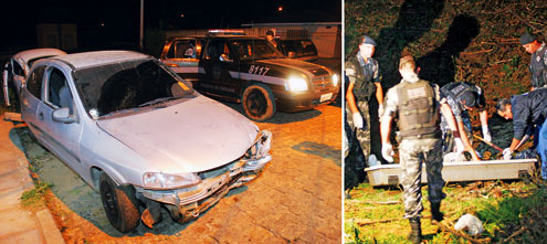 Por volta de 20h, policiais do serviço reservado comunicaram a equipe da Rone que o trio estava reunido. Os PMs deslocaram-se para o centro de Piraquara e localizaram o Celta placa HCI-3528, ocupado pelos suspeitos.