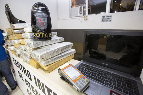 Uma quadrilha de seis indivíduos foi presa em flagrante com 48,5 quilos de maconha, notebooks, tocas balaclavas, cofres e até uma máquina de cartões durante uma abordagem da Rondas Ostensivas Tático Móvel (Rotam). Enquanto atendia a uma denúncia de disparo de arma de fogo na Rua Gabriel Corisco Domingues, no bairro Boqueirão, os policiais que atendiam a solicitação suspeitaram da atitude de um homem, que ao ser abordado teria iniciado a fuga a pé.