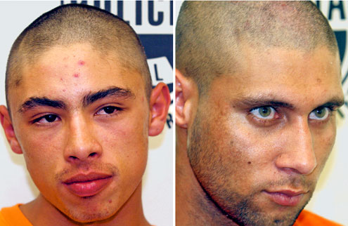 Apontados pela polícia como responsáveis por pelo menos sete assassinatos, na Fazendinha, Geovano Adriano de Paula Garcia, o “Giga”, 18 anos, e Thiago Rafael Diniz, o “Peteca”, 22, foram presos por investigadores da Delegacia de Homicídios. A dupla faria parte de um grupo ligado ao tráfico de drogas da Vila Estrela.