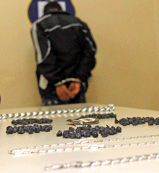 Quando o rapaz notou a viatura, tentou fugir e jogar a droga na tubulação. Mas a atitude foi percebida pelos guardas, que abordaram o suspeito e encontraram as pedras.