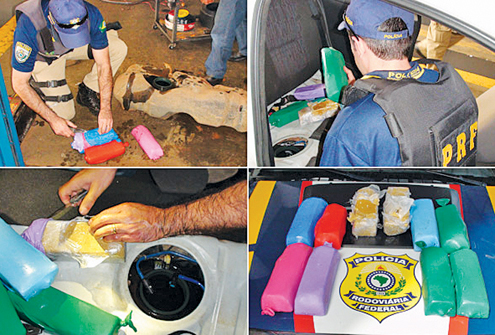 O automóvel foi parado por agentes da PRF na saída de Guaíra, oeste do Estado, para uma fiscalização de rotina. A estrada é muito utilizada por traficantes para o transporte de drogas e mercadorias ilegais. Após revista realizada no veículo, foram encontrados 10 quilos da droga escondidas no interior do tanque de combustível.