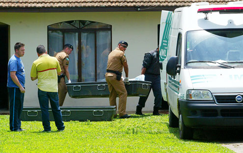 Duas professoras foram assassinadas a tiros quando assistiam tevê no quarto da casa onde moravam, na Rua São Salvador, Costeira, em São José dos Pinhais. O crime aconteceu durante a madrugada, porém, os corpos de Patrícia Esteves Gomes, 29 anos, e Sandra Maria de Moraes, 39, só foram encontrados no final da manhã de ontem. O motivo do duplo assassinato ainda é mistério, já que nada foi roubado da residência. A hipótese de crime passional não foi descartada.