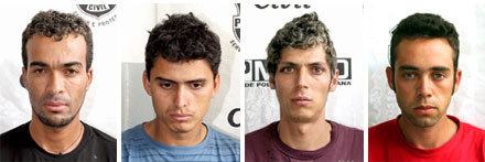 Suspeitos de vários crimes e reconhecidos por algumas vítimas, Wagner Ribeiro Kaiser, 22 anos; Emerson Daniel Suzena, 23; Alessandro Machado Holubenko, 24, e Genivaldo Macedo Cruz, 32, estão presos na delegacia de Campo Largo. Além deles, duas adolescentes de 13 e 17 anos, que participaram de um assalto, foram apreendidas.