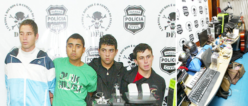 Dionnathan Roberth Maliski, 27 anos, Elhio Henrique Carvalho Landarin, 19, Edu Irineu Neto, 18, e Allan Pereira de Lima, 20, confessaram ter praticado alguns assaltos. Entretanto, nenhum quis falar sobre as agressões contra as vítimas. Eles foram reconhecidos como autores de pelo menos dois crimes, mas a polícia acredita que com a divulgação da imagem dos suspeitos, outras vítimas procurem a DFR. “Pedimos que venham até a delegacia, reaver seus pertences”, disse o delegado. Todo o material apreendido e os veículos (três motocicletas e dois carros), estão no depósito do distrito.O telefone da DFR é 3218-6100.