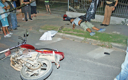 Três estampidos e o barulho de algo caindo e arrastando no chão foi tudo o que um morador da Rua Dejair Bonfim Pinto, no Jardim Graziele, em Almirante Tamandaré, ouviu às 21h30 de ontem. Ao sair, para ver o que tinha acontecido, não viu nenhuma movimentação na rua. Mas ao lado de seu portão assustou-se com um corpo estendido, próximo de uma moto tombada no asfalto. Era Eloir Amaro Gonçalves, 45 anos, que pilotava a Honda CG placa LXO-7998 (Rebouças-PR).