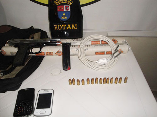 Na tentativa de fugir da abordagem dos policiais, Jeferson ainda entrou em uma estrada de terra, mas foi parado. Além das dinamites, os policiais também encontraram detonadores, uma pistola 9 milímetros, munições e dois celulares.