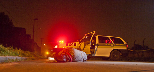 Com isqueiro e cachimbo nas mãos, um homem de idade entre 25 e 30 anos, foi executado com tiros na cabeça na noite de quarta-feira (03), na Rua Cid Marcondes de Albuquerque, bairro Pinheirinho, em Curitiba.