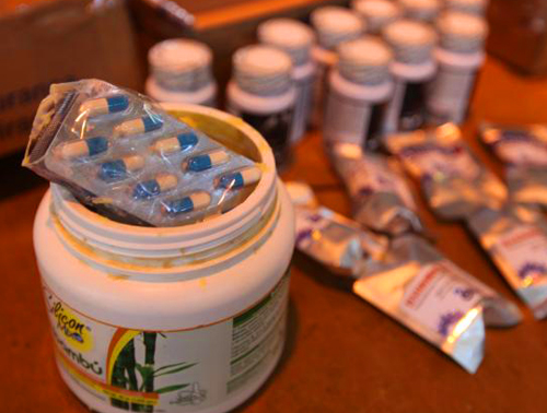 Hoje (23), no momento da contagem das mercadorias, foi verificado que alguns recipientes de cosméticos na verdade estavam sendo usados para ocultar medicamentos e anabolizantes. Foram apreendidos 60 comprimidos de medicamento emagrecedor, 20 ampolas de anabolizantes e 11 frascos de suplementos alimentares.