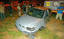Os policiais reagiram e, em meio ao tiroteio, o motorista do Palio se atrapalhou e colidiu o veículo contra uma mureta, na rotatória da Avenida Emílio Johnson, próximo ao terminal de ônibus, no centro de Almirante Tamandaré. A viatura que vinha logo atrás também se acidentou.