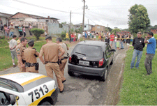 Investigadores da Delegacia de Homicídios e policiais do 12º Distrito Policial (Santa Felicidade) chegaram em seguida. Do interior do veículo, a perícia recolheu nove cápsulas de pistola calibre 9 milímetros.