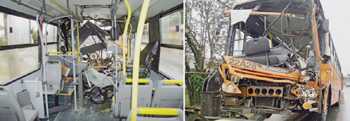 Cerca de duas horas mais tarde, um ônibus da Rimatur bateu de frente contra uma árvore, em uma curva da Rua José Vale, em Santa Felicidade, bem próximo do Parque Tingui.