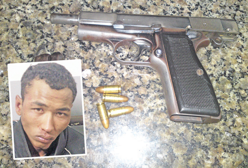 Com Edicarlos, foi apreendida uma pistola calibre nove milímetros e farta munição do mesmo calibre. O rapaz estava com mandado de prisão em aberto e era foragido, com três passagens por roubo.