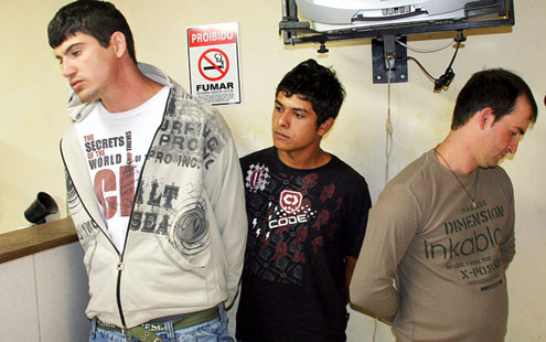 Fernando Afonso da Silva, 19 anos, Marcos Alves, 27, e Adenilso Kasarowski, 28, foram encaminhados para a delegacia do Alto Maracanã e autuados por porte ilegal de armas.