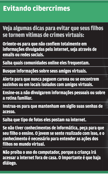 Ele recomenda mais informação por parte dos pais. “O seu filho no mundo virtual pode ter idade, imagem e comportamento diferentes. Os pais conhecem os filhos no mundo real, mas não no virtual”, ressalta.