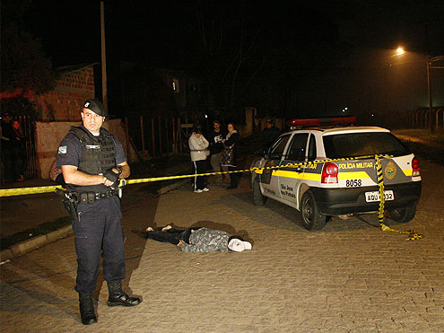 Ainda na noite de sábado, no Jardim Alegria, em São José dos Pinhais, um rapaz jantou com a família, se despediu e foi morto minutos depois de sair de casa.