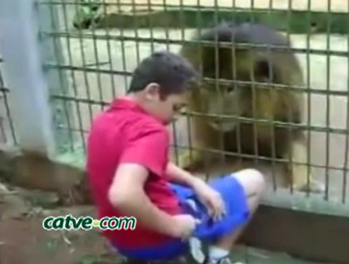 Desta vez, um vídeo divulgado pela Catve, no site catve.com, mostra o pai do garoto, Marcos Rocha, incentivando o filho a alimentar o leão, que também estava na área reservada aos felinos, momentos antes do ataque do tigre.