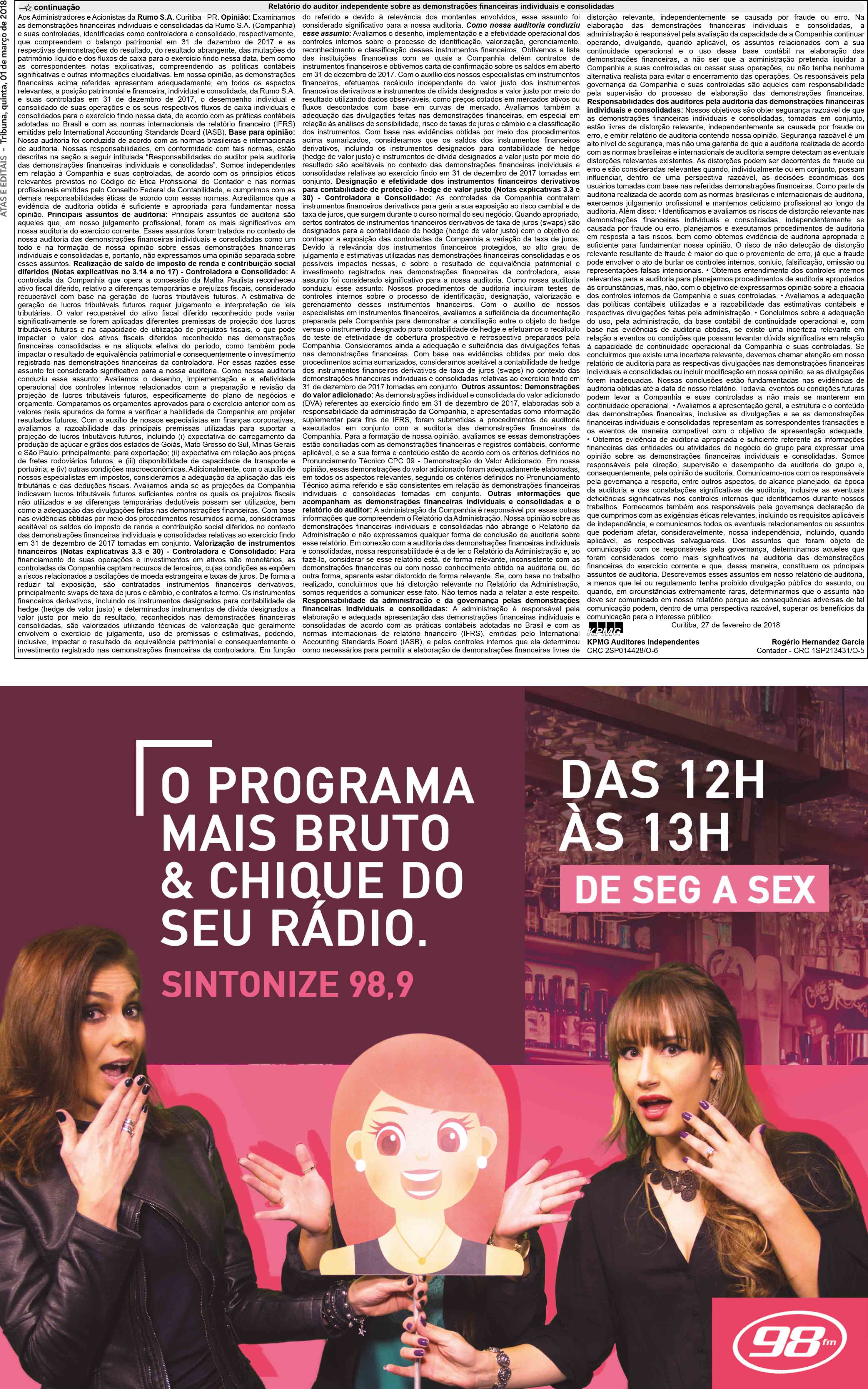 Publicidade Legal veiculada no jornal Tribuna do Paraná, em 1 de março de 2018, na página 19.