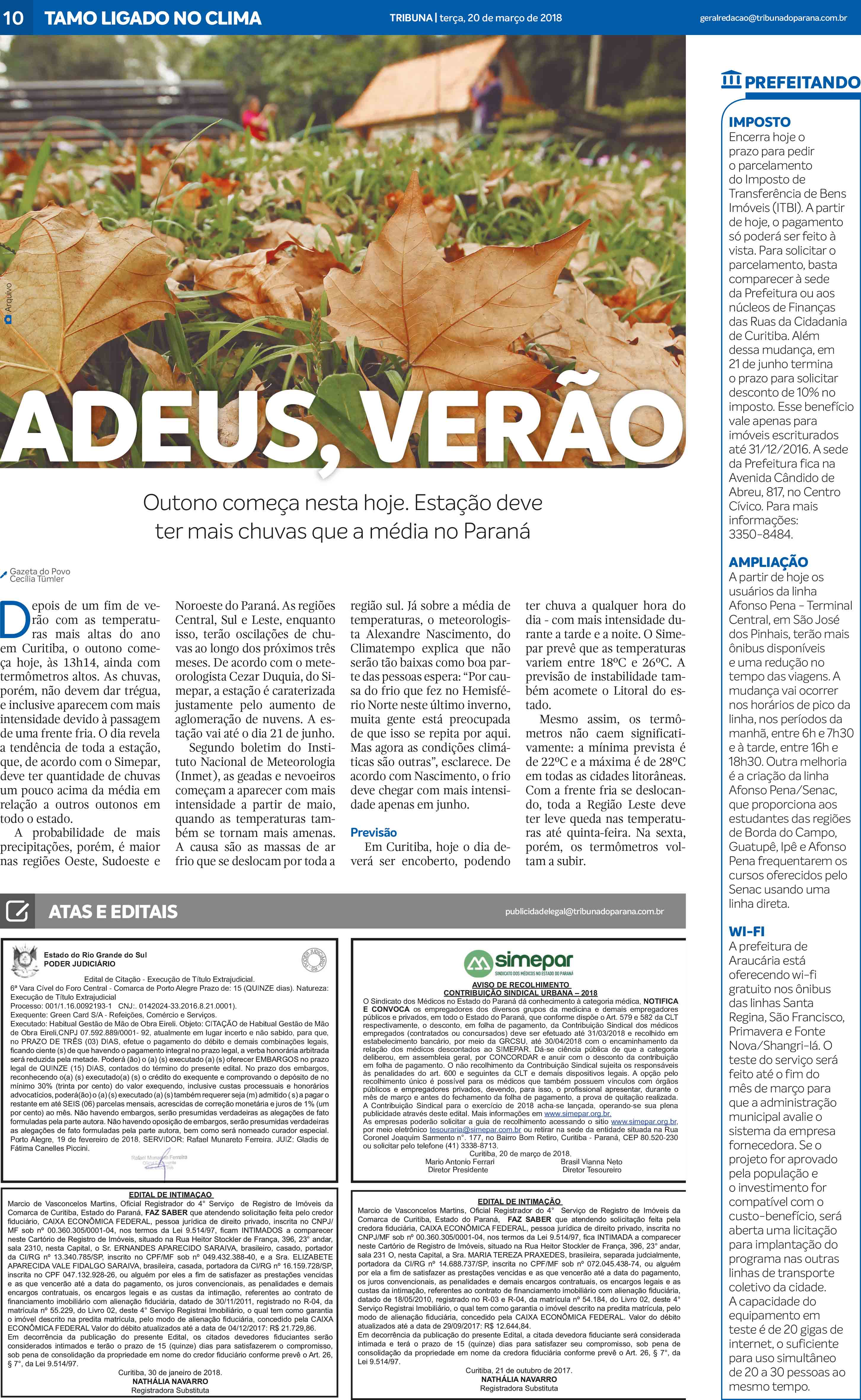 HomePublicidade LegalPublicidade 21/03/2018 Publicidade 21/03/2018 Publicidade Legal veiculada no jornal Tribuna do Paraná, em 20 de março de 2018, na página 10. Fazer download Anunciantes nesta página: Caixa Economica - Ernandes Aparecido,Caixa Economica - Maria Tereza Praxedes,Poder Judiciário - Estado Rio Grande do Sul,Simepar - Sindicato dos Médicos do Estado do Paraná